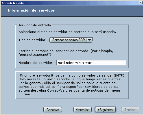 El nombre del servidor será mail.midomio.com (donde midominio.com