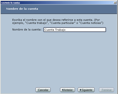 En el formulario de Nombre de la cuenta entre algún nombre descriptivo