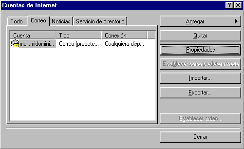 Click en Aceptar y Outlook Express estará configurado para enviar