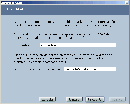 mediante el cual desee referirse a la cuenta en el programa Netscape.