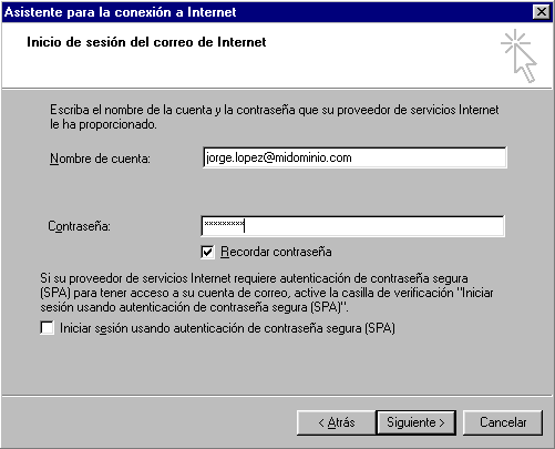 Escriba el nombre de su cuenta de e-mail (es su dirección de e-mail